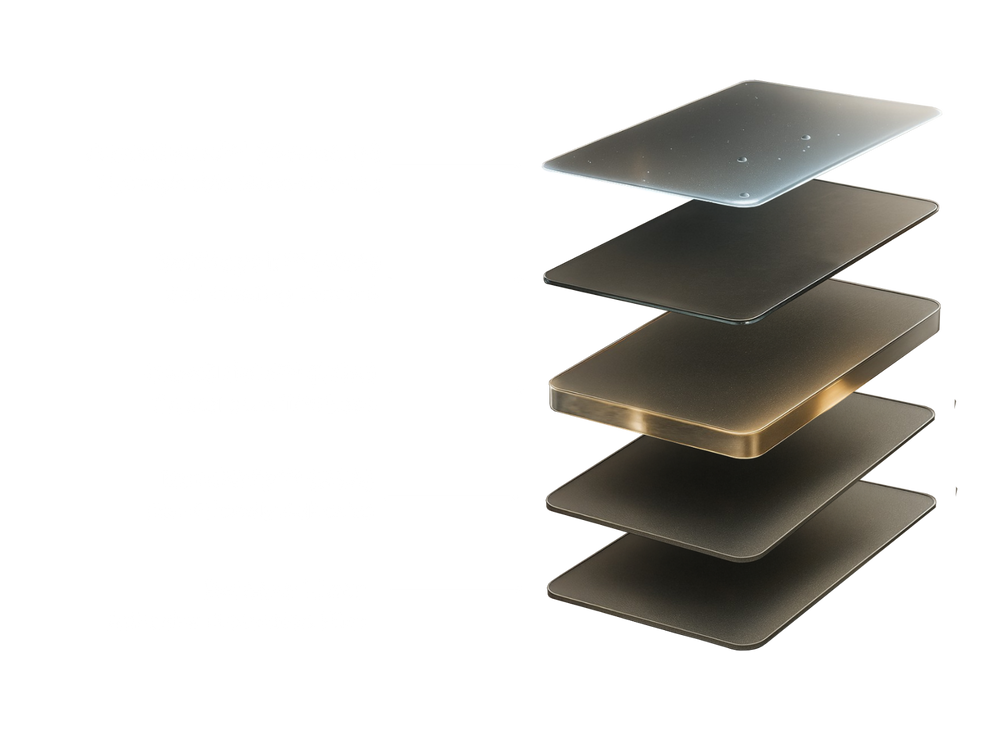 Každá ochranná fólia Nexthor Aegis™ je výsledkom precízneho inžinierstva a medzinárodnej spolupráce medzi materiálovými laboratóriami v Nemecku a USA. Systém je navrhnutý ako viacvrstvová ochranná štruktúra, kde každá technológia plní jasne definovanú funkciu – od jadra až po povrch.